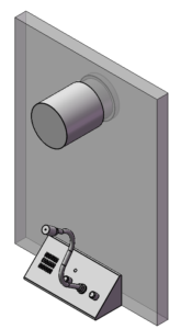 SC-350 Two-way communication is designed for applications where a fire shutter or window shade is present accomplished through the use of speakers and micro-phones located on each side of the partition. The Master unit is equipped with a 15″ gooseneck microphone, power on/off switch, power-on LED, and external volume controls. The Remote Unit is window-mounted and may incorporate a level 3 bullet resistive insert..